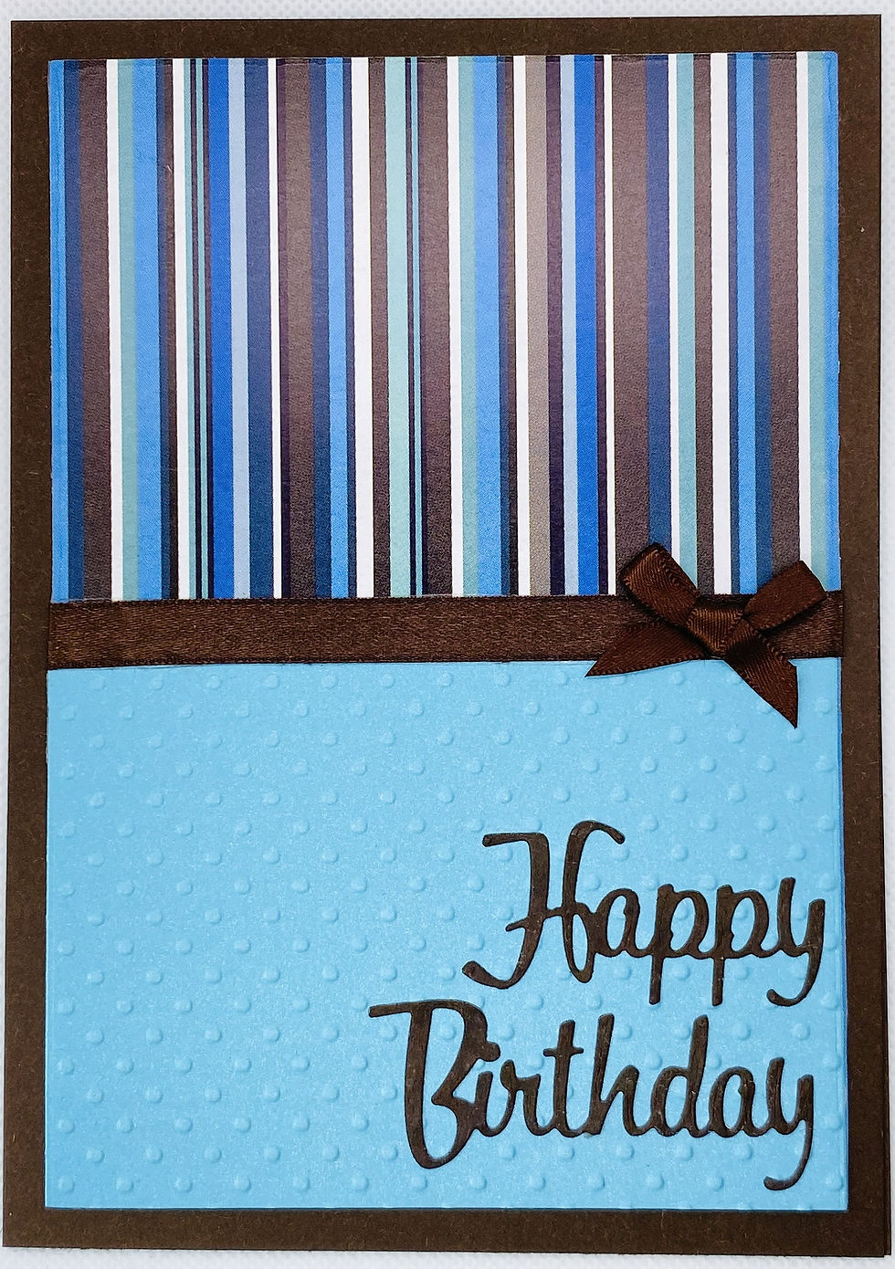 Brown/Blue Dots/Stripes Happy Birthday Card
